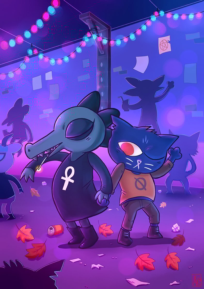 Digital illustration featuring Mae and Bea dancing at the party, can you hear Cycles II song?
