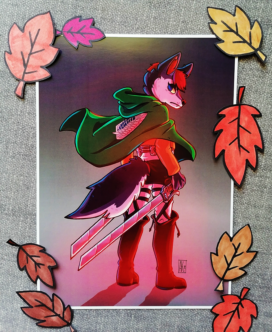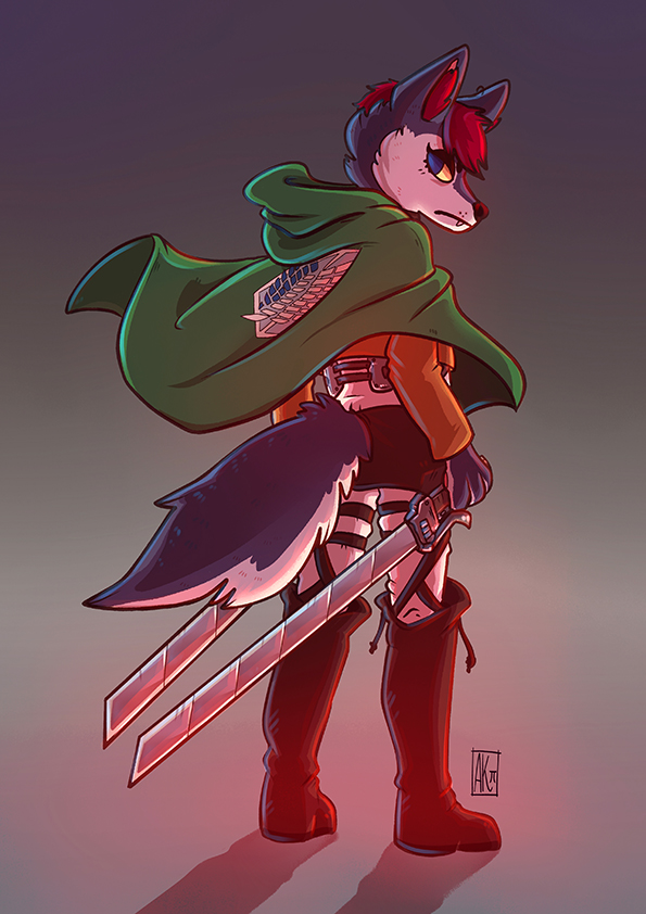 Digital illustration featuring my sona Juniper wearing the Survey Corps' uniform from Attack on Titan!