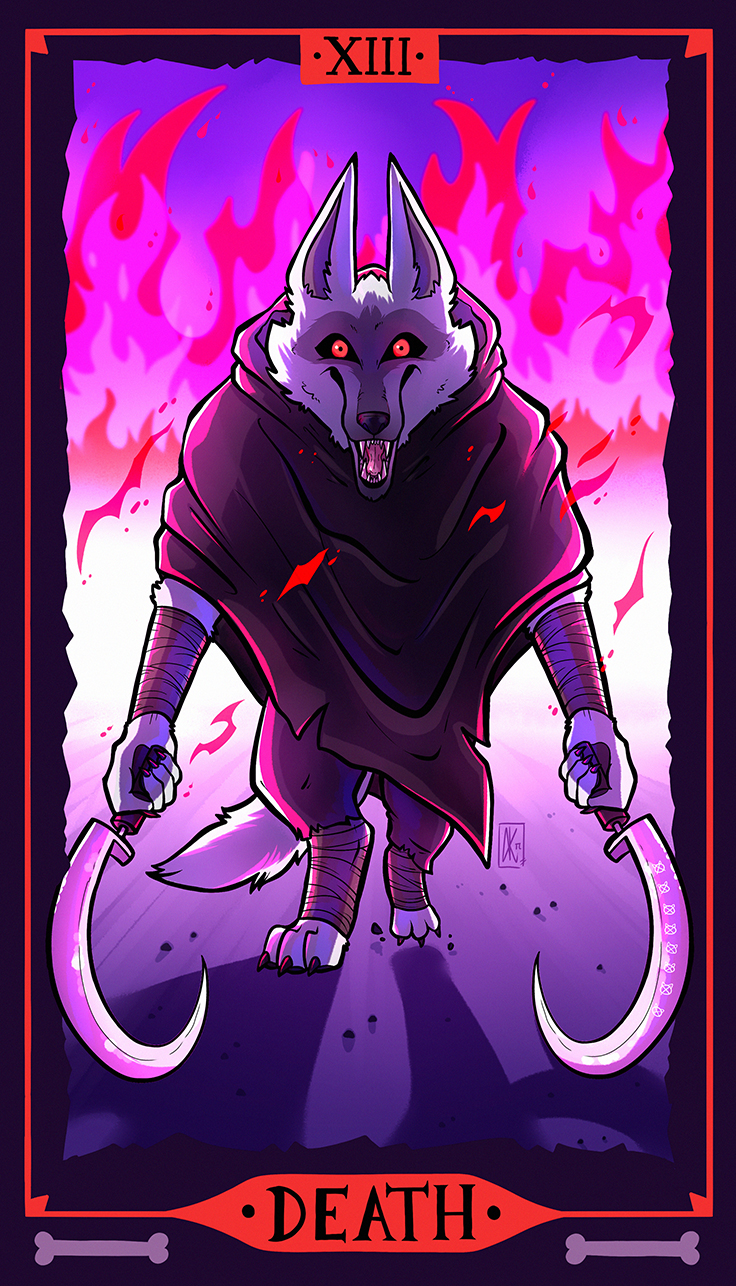 Digital illustration featuring Lobo (Death) from the movie Puss in Boots in a special tarot card!